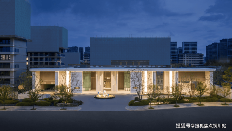 主入口高约10米,宽约70米恢宏小区大门,环岛式落客区,奢石、水景、名木组合,给足名门大家的尊贵巍峨归家仪式。