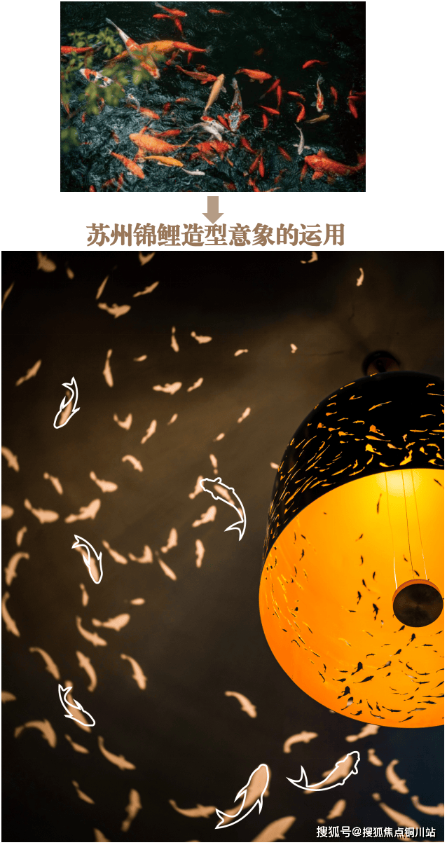 步入会馆内场,顶部吊灯“瑞鱼旋舞”,非遗匠人制作,灵感源于苏州非遗鱼灯,寓意“生活有余,光映丰年”,也是对太湖渔文化的诗意致敬;