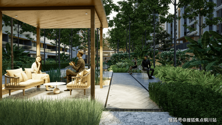 静谧氛围的营造,也离不开项目约1.16的容积率,加上下沉式度假景观轴、双层星空会所、水岸客厅等园林规划,极低的容积率+多重景观的搭配,不亚于将一座度假酒店搬到这里。
