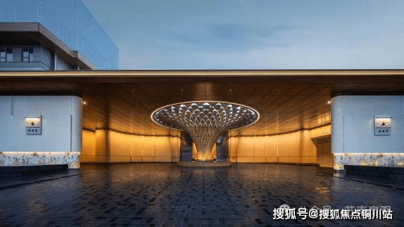 静谧庄严的归家门庭————约40m长、约4.8m高的大尺度界面门庭,采用编织手法打造 “栖心之巢”艺术装置,不仅撑起了「天下四聚」的体面仪式,更升华为一段从繁华归于宁静的栖心之旅。