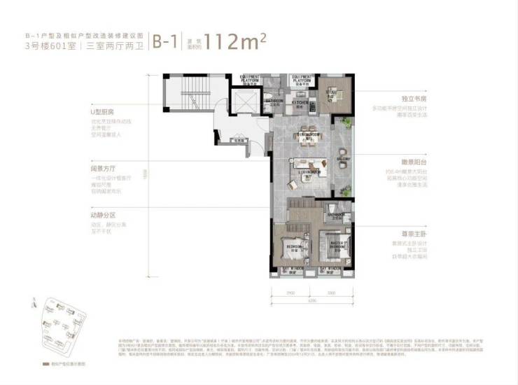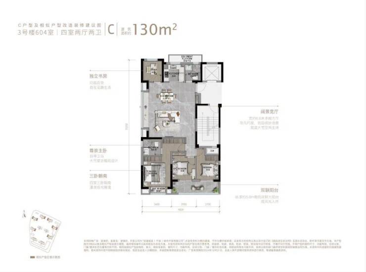 • 套房式主卧:主卧度假套房式设计,自带飘窗、卫浴