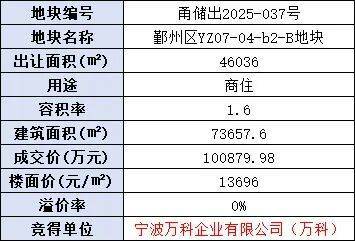 这是自2023年7月以来,时隔2年万科再度在宁波土拍市场拿地。