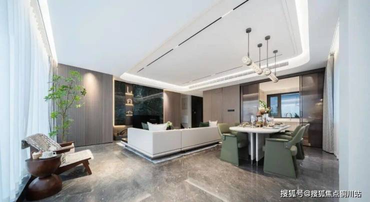 上叠约6.75米的景观宽厅,将厨房、餐厅、客厅、阳台连成流畅的整体,视觉上延展空间感的同时,更能拓展出丰富的生活场景,比如书房、茶室、吧台、运动区……
