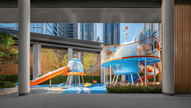 户外设施包括会客厅、休闲书吧、儿童游乐场、户外影院等,无论是遛娃放松、看书休闲或者社交会客,都能在小区内部完成。