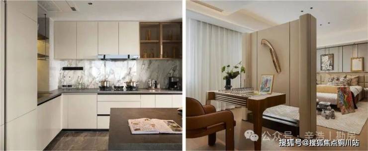 开放式中西餐厨,进口一线奢装厨电+奢石岩板背景墙,提升厨房的艺术美感。