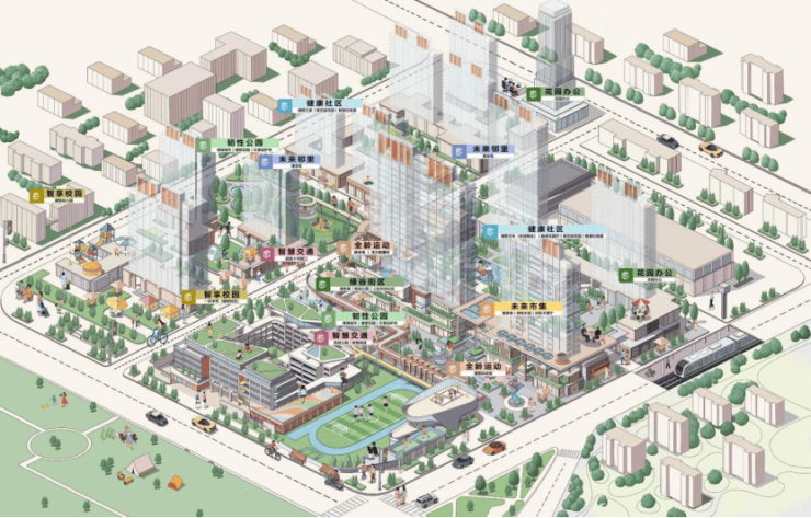 作为超级客厅与邻里中心的未来邻里、实现智慧交通、方便采买的理想优菜坊、安顿全生命周期身心健康的健康社区、定期举办文娱展览的理想文社、4大“CO·life”架空泛会所,家门口的理想生活触手可及。