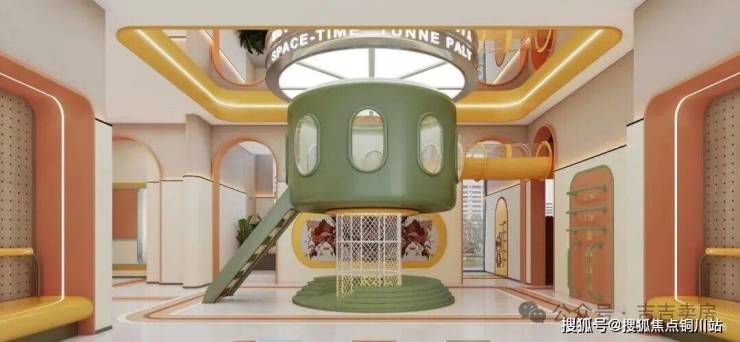 6#首层架空层打造儿童娱乐主题场域,规划趣味厨房、益智学习区、空中巴士、穿梭隧道、阅读区、绘画区、攀爬区等11大缤纷功能区。