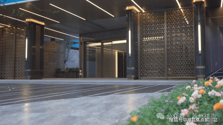 每个单元都有专门设计的入户景墙,专属定制灯箱,搭配多层次花境植被,这样的细节感,在整个苏州楼市并不多见。
