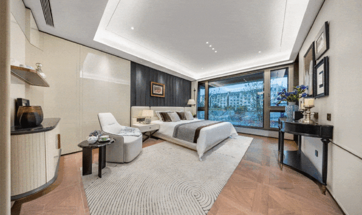 如约252㎡上叠的行政主卧,约6.8米开间搭配大面积落地窗,尺度与视野甚至超越了多数大平层。