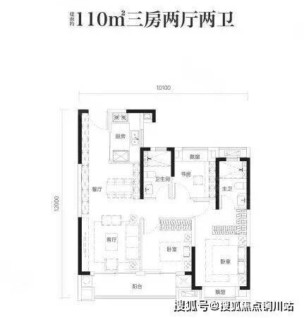 110户型分布在2号楼两个单元的中间户,和五年前主流的三开间朝南的户型一样,北向对连廊。