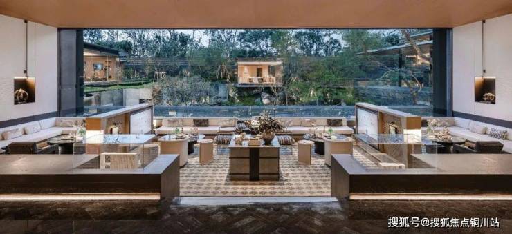 它以实景征服了每一位前去参观学习的同行。山水度假的隐逸哲学,被凝练为一场与自然对话的艺术,大量的借景、对视艺术,让人行走其中时,无时无刻不在与天地对话。