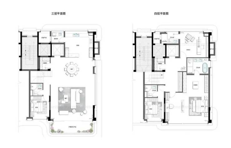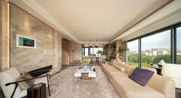 户型②下叠240 m²精装修风格为贵族东方风格,由近境制作团队设计,一层公区客餐厨一体化开放空间,客餐厅 270°大面的落地开窗,内外对景,取自然为景