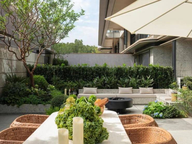 在整体空间组织上,项目以现代语汇重新诠释东方游园意境——空中花园与下沉庭院交错,层次递进的空间转换,形成 “大隐于市”之境,赋予归家过程以归属感。
