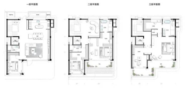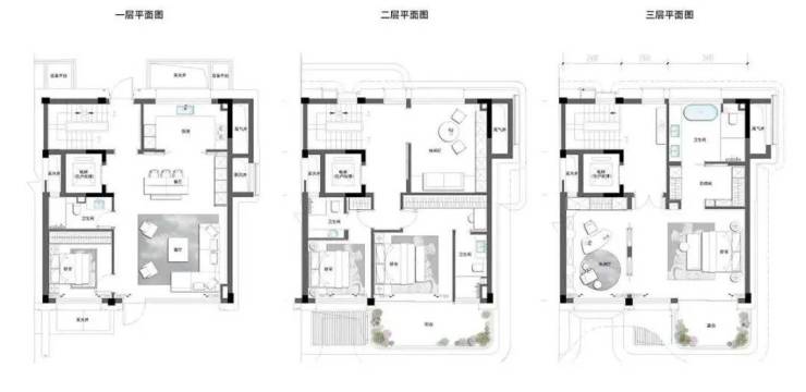 项目叠拼235-286㎡面积段户型,上中下叠均独立入户,全套房设计。设计亮点:宅前个性展示区、归家仪式型门头、6.2米超宽起居厅、中叠增设露台形成室内外联动的社交空间。