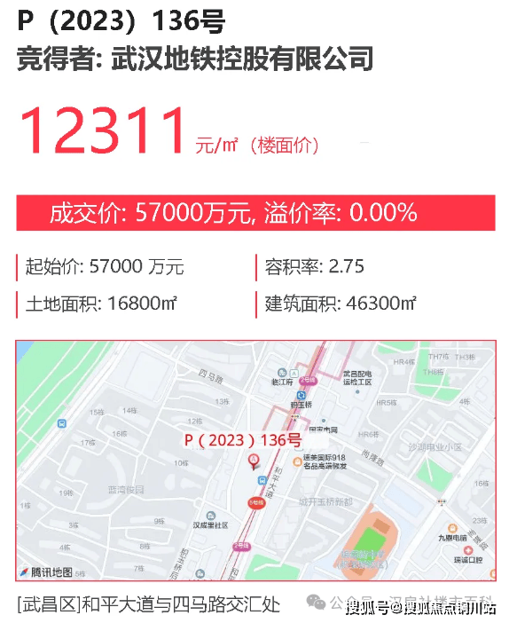 华润望雲项目即P(2023) 136号武昌积玉桥地铁站地块,由武昌地铁控股有限公司以底价获取,折合楼面价12311元/㎡,由华润代建。项目总建筑面积63753.26㎡,计容建筑面积46300㎡,住宅建筑面积37260㎡,容积率2.76,一共239户,机动停车位284个。项目户均面积约155.9㎡,定位于改善产品。