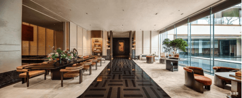 而“友好”空间界面的打造,是“好房子”的另一重要指标,关乎每一位家人的亲密归属感。步入门庭之后,下沉式水幕缓缓流淌,如同藏在时间里的褶皱,为当代人带来一份慢慢舒卷的松弛感。与此同时,项目将金陵人文中的珐琅、刺绣、金箔等元素融入建筑空间之内,于可游可聚可赏之间,让一切如同艺术品般可被阅读。