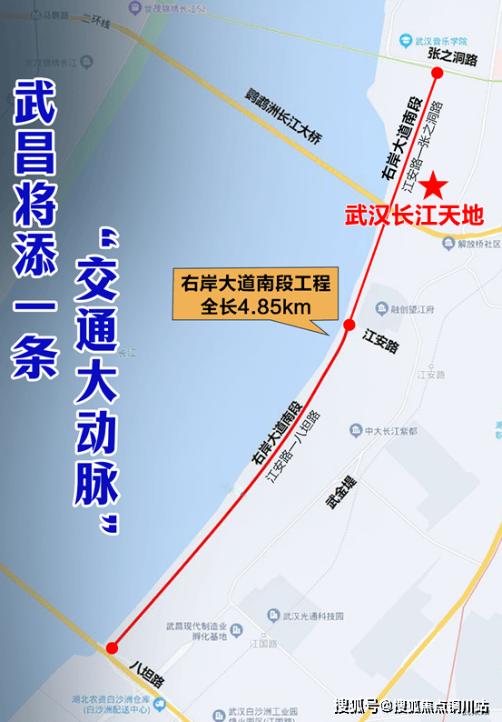 2023年初,武汉城建旗下子公司中标右岸大道南段(临江大道)工程(张之洞路-江安路)工程,未来武汉长江天地门口的断头路将被打通,该道路规划为地面辅路双向4车道+地下主线双向4车道的双层路网。
