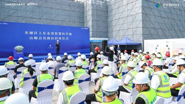 2025年8月15日上午9点28分,东丽区上东金茂智慧科学城山姆会员商店迎来封顶仪式。