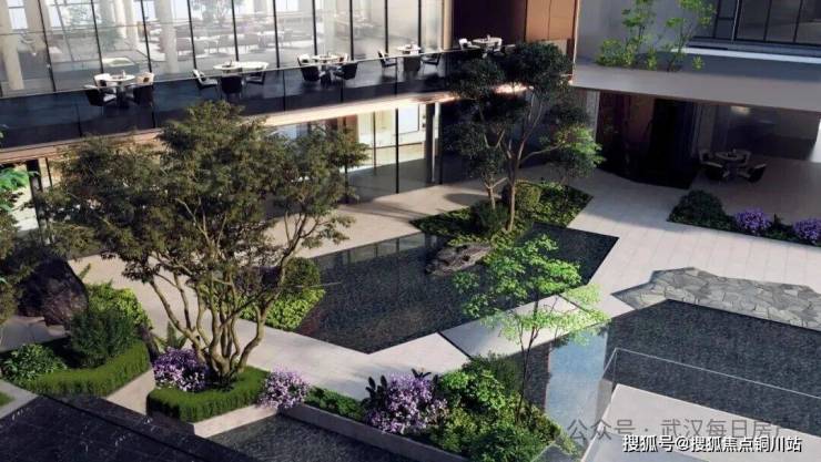 光谷壹号院基于地块天然高差,创新借鉴苏州拥翠山庄的意境营造、美国波特兰凯勒喷泉公园的现代水景手法及纽约泪滴公园的生态理念,打造出武汉罕有的台地式景观体系。