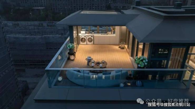 空中上叠——以“垂直立体生活”为创新理念,通过整层会客厅与双星空露台的设计,实现了功能、尺度与意境的融合。约67㎡的空中会客厅成为家庭社交与欢聚的主要场域,约40㎡的顶层星空露台则延展了生活的自然边界,兼顾观景、休闲与私享。这种既保证家庭成员私密性、又强化公共互动空间的设计,为追求品质改善的家庭提供了更优质的居住解决方案。
