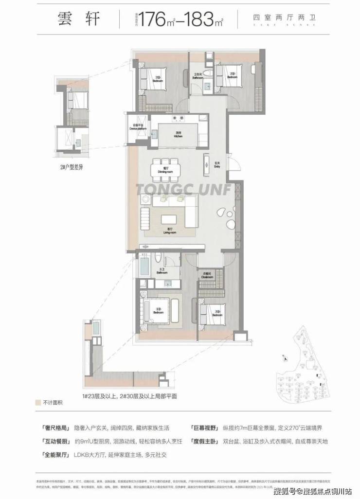🔹准四代户型设计,实现约93%-103%超高得房率,营造“270度全景舱”、“双主卧奢阔套房”、“LDKB+X无界空间”、“三开间阔绰尺度”等,呈献湖滨美学作品。