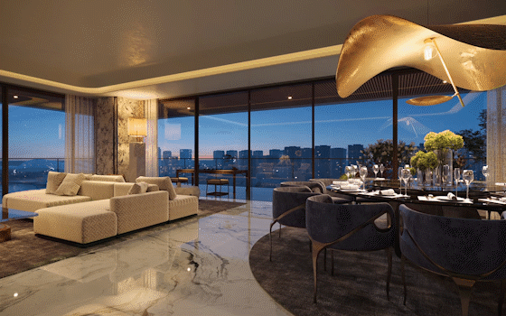 270°环幕视野×私家艺术馆,落地窗将新城河波光收作背景,全球收藏品在流转光影中,无声诠释主人的寰球眼界。