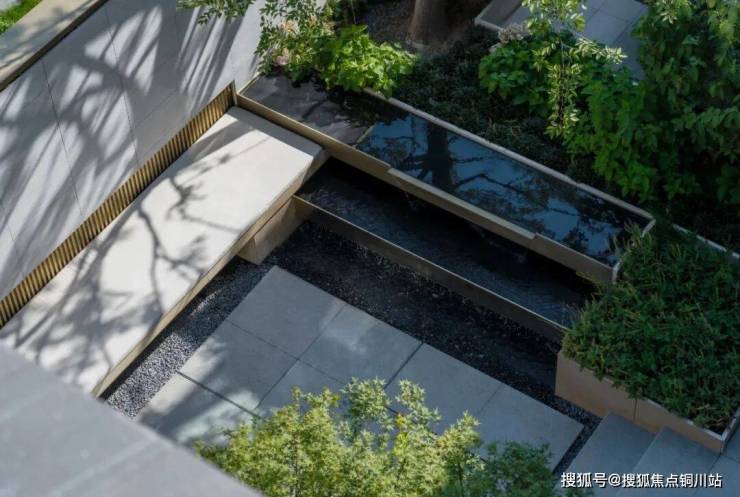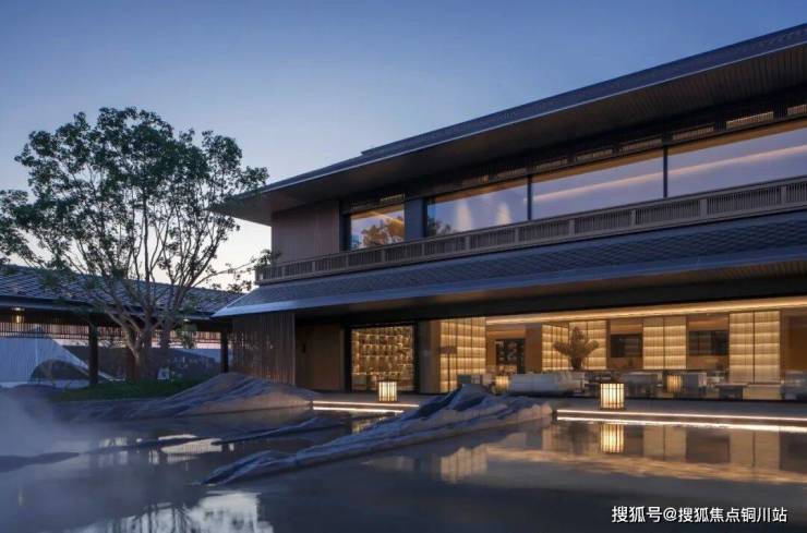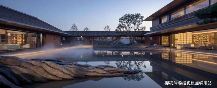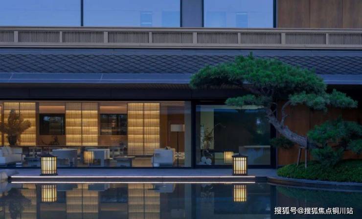 合院中的方庭,以平静 的水面倒影出明亮 楼宇,将场地的 视觉效果放大,使有限的 面积问题得到解决 。池畔的地灯,散发温暖的点点光芒,照亮前路,也为夜晚的方庭增添静谧的氛围。