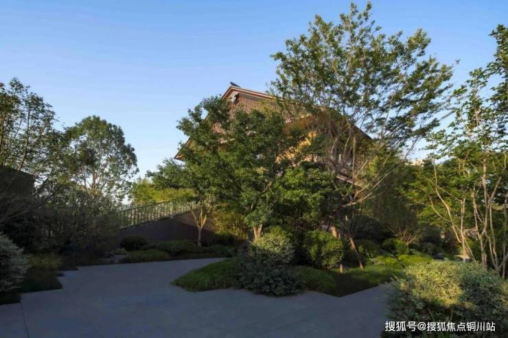 庭院之外,是一段具有高差的花下山林步道。步道两侧种植着山桃、 枫、竹、银杏、紫薇、海棠等国风气质的植物诠释人生境界。夏时漫步 其间,如踏入幽静山林,生态自然养居氛围油然而生。花期时,看漫山花雨开遍,闭目静默闻花香。