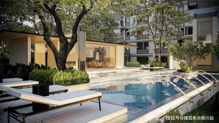 社区的设计思路是以安缦、丽思卡尔顿等精奢酒店的生活方式为标准,营造出极致松弛感的氛围。内部园林更是采用了现代手法,呈现出一个富有层次感与美感的社区。