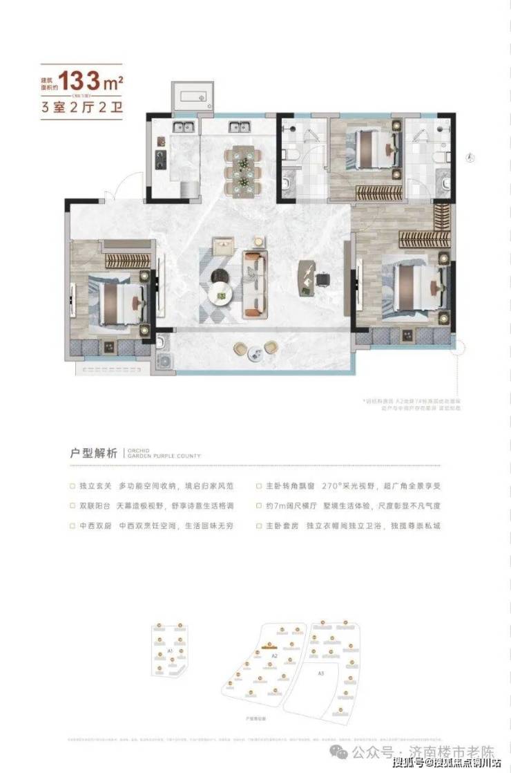 【户型亮点】:南向大面宽,贯通式阳台,专梯入户,飘窗设计等