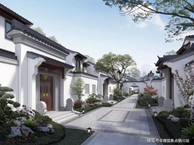 从鸟瞰图上看,顺着蜿蜒流淌的浒溪,312户白墙瓦黛的江南中式合院,以及两幢精致洋房,精致地镶嵌于青山绿水间。春风十里的总建筑面积约13万方,0.44的低容积率,绿化率高达37.2%,这样的配比,从容地满足了现代人生态健康栖居追求。