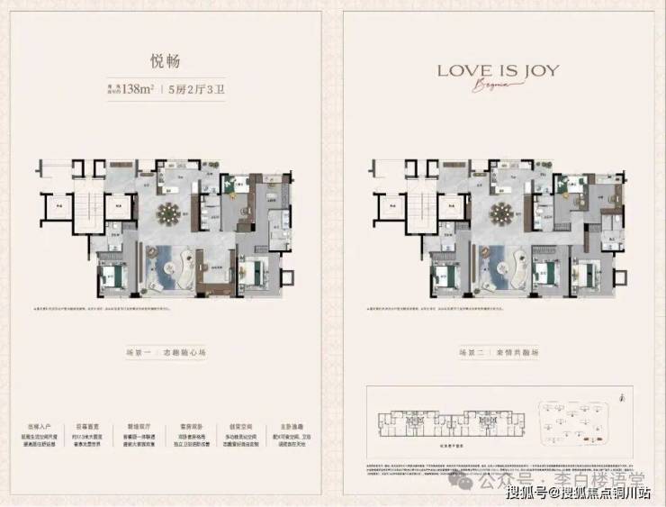 超高得房基础下,可实现五房+三明卫布局,不论三代同堂、三孩时代,还是想要更多如书房、儿童游乐房、娱乐音影室,或者超大主卧套房,都可轻松实现。