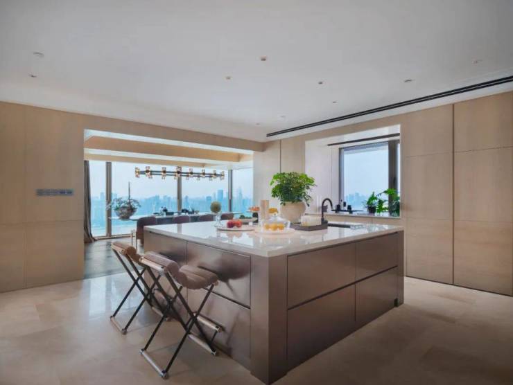 联投中心不做普通豪宅的“流水线奢华”,它挑战的方向是豪宅的定制化、艺术化。建面约550平方米的临江大平层,早一步完成了艺术化豪宅的进化。