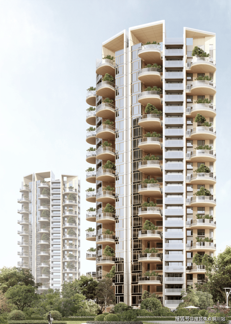 作为义乌首个亮相的“空中花园”小区项目,华润置地在孝子祠澐璟推出了“垂直森林”和“生态峡谷”两大全新概念,利用楼栋围合下沉峡谷的形式回应义乌地形风貌,引入绿洲,延续生态;同时建筑采用露台外伸、奇偶层错位的布局,每一层都形成了空中庭院的概念,力求打开义乌的空中花园人居想象空间。