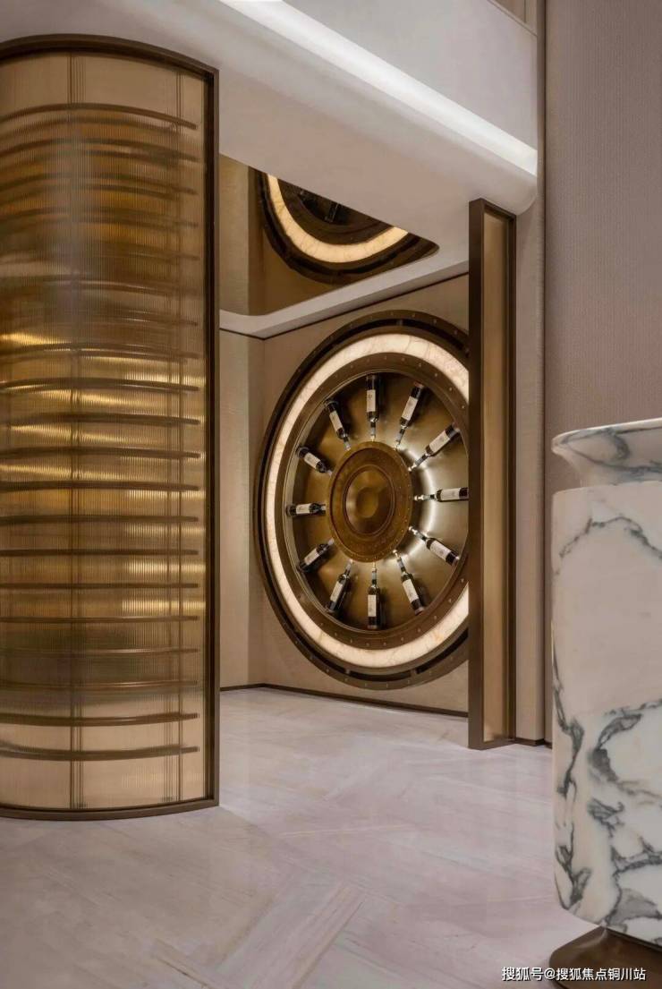 Three sets of wine cabinets are ingeniously integrated, with a gold vault door shaped wine storage device equipped with a rotating base for easy access and storage. It combines display, storage, and interactive experience, showcasing the owner's taste and passion.