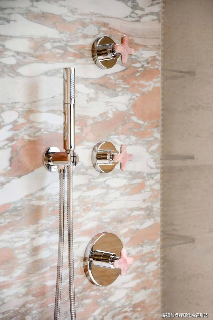 The main bathroom adopts Kallista's Per Se series faucet and hardware equipment, with design lines extracted from modern architecture in the mid-20th century, minimalist and ultimate. The handle is made of crystal, and the gold foil inside is artificially blown and naturally bursts. Each pattern is unique and cannot be replicated.