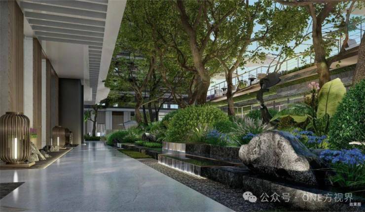 甄选乌柏、晚樱、天堂鸟等多层次植被