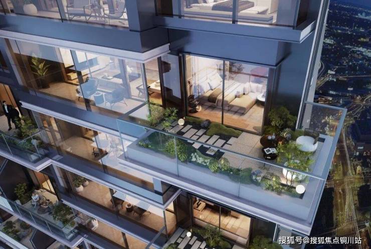 建筑立面以大面积玻璃、铝板为主,呼应河西的国际化背景。宋式的飞檐屋顶、东方韵味,用现代的建筑语言表达却毫无违和感。露台,宛若悬浮于运用大面积玻璃的楼体之外的“水晶盒子”。