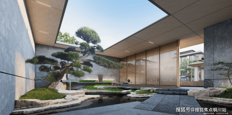 公区的核心亮点,在于精心营造的下沉式琉光水院。