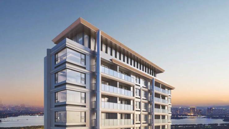 奢雅强调的外立面。非对称“双T”构图,如江上之帆,穿孔铝板塔冠配泛光照明,仿若黄浦江畔的灯塔,铝板搭配三玻两腔LOW-E玻璃,打造光幕立面。