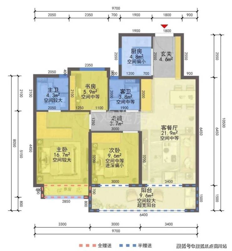 建面约97方户型示意图