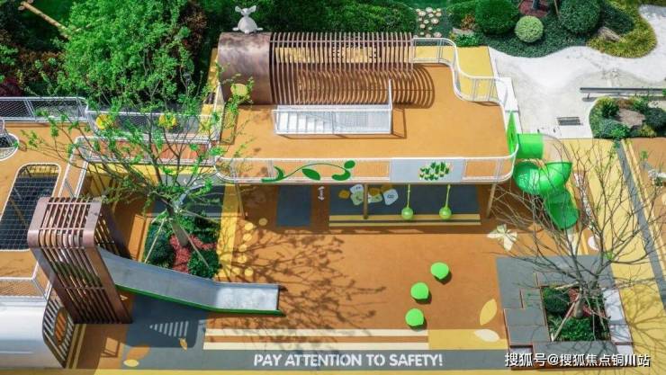 地面全部采用柔软的塑胶铺设,在确保安全的前提下,释放他们天性中的冒险精神。这种将游乐设施与自然环境巧妙融合的设计,让孩子们在玩耍中亲近自然,感受四季变化。