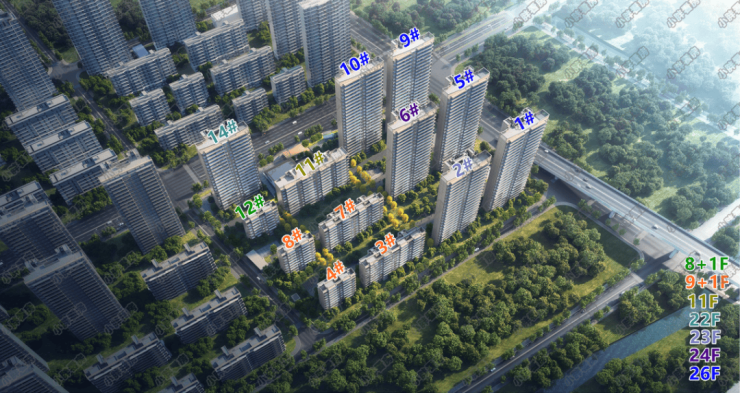 根据规划,项目拟建13栋8+1F-26F住宅,其中,1栋8+1F洋房、4栋9+1F洋房、1栋11F洋房、1栋22F高层、1栋23F高层、1栋24F高层,4栋26F高层。