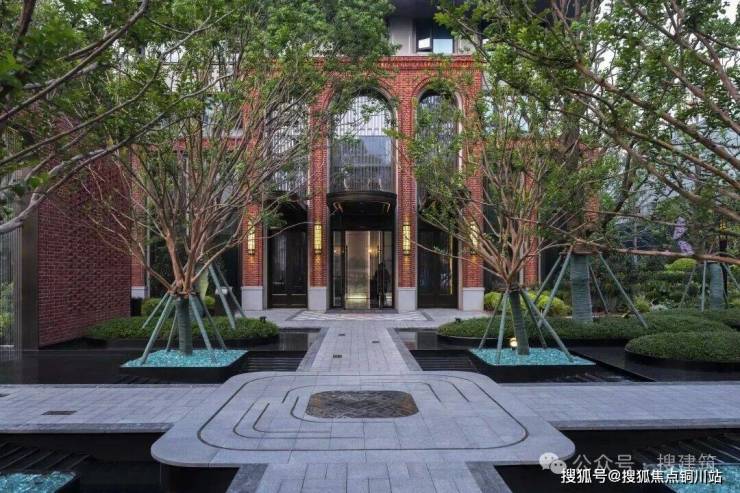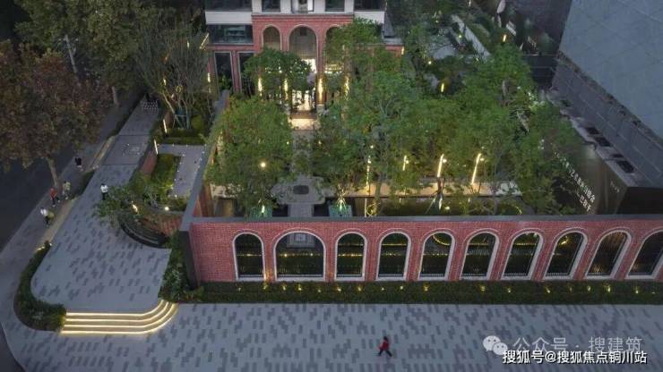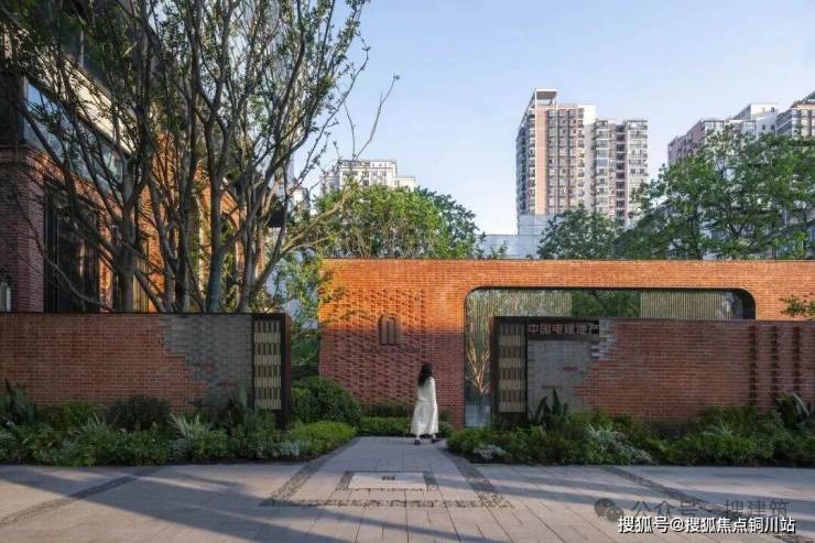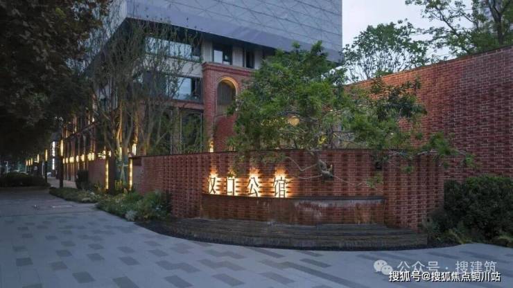 自京汉大道引入,两道仪式红砖墙瞬间将氛围拉满。穿过磅礴的水帘景墙,仿佛穿越了时空。