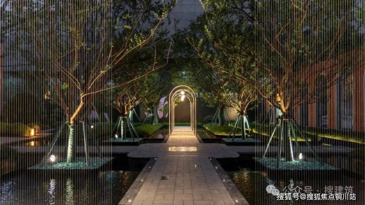 穿过门廊,步入林影婆娑的曲折小径,娜塔栎重叠的光影空间里,玻璃砖在阳光下折射出耀眼光芒。铁冬青作为视觉焦点,四季变幻的叶色,在无声演绎着时光流转的魅力,让家与自然同频共振。
