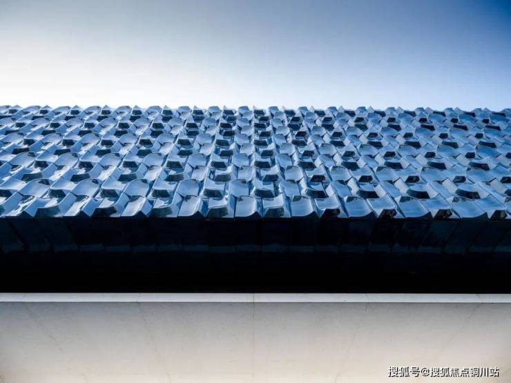 沿街立面由千余块手工定制陶砖组成,建筑基座则由贝金米黄石材砌成,稳重的石材搭配琉璃的流光溢彩、极简的造型中透露出手工的温度。