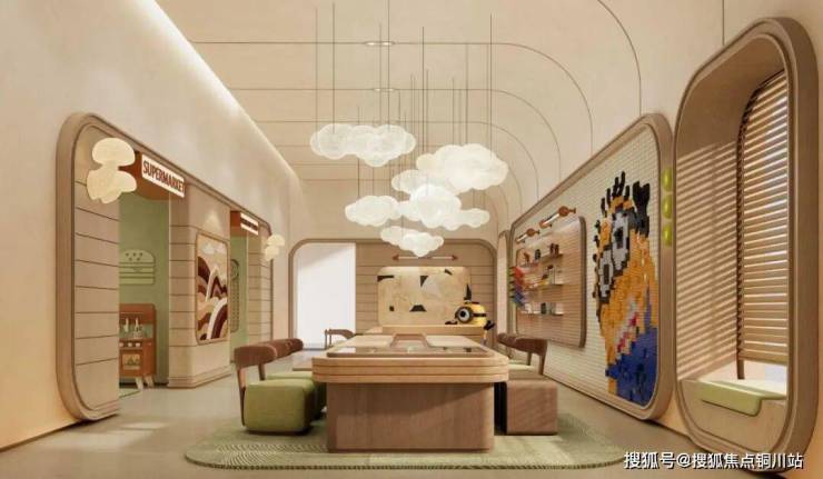 约2000㎡的自然滩涂的儿童乐园,打破了传统器材堆砌的设计,融入了沙地、原木等自然元素,让孩子可以在自然中尽情探索。同时,在架空层打造了健身、休闲等覆盖全龄的“泛会所”场景,让业主在家楼下感受轻度假的闲适时光。