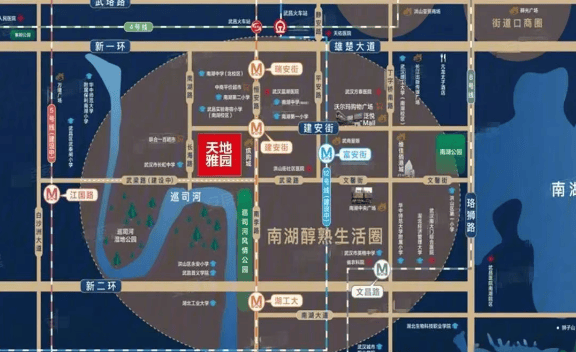 教育配套:直线 3km 范围内有 96 个幼儿园,27 个小学,如武昌实验寄宿小学、武昌未来实验小学 (南湖校区) 等;12 个中学,如武汉市育英中学、武汉市南湖中学 (南校区) 等。