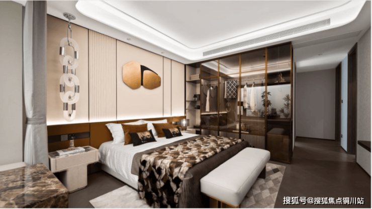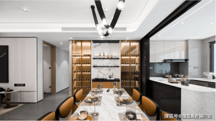 在细节之处,还有诸多人性化设计。比如:玄关柜体表面采用了豪车级皮革饰面、屋内罕见的弧形吊顶、客厅背景墙等等...