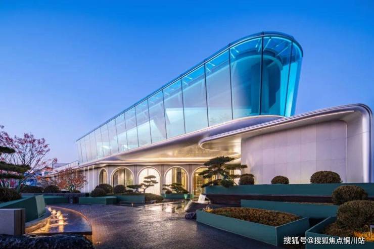 散发着金属光泽的铝板,搭配浅灰色石材、通透的玻璃,再加上大量的弧形处理,主打一个奢阔时尚。